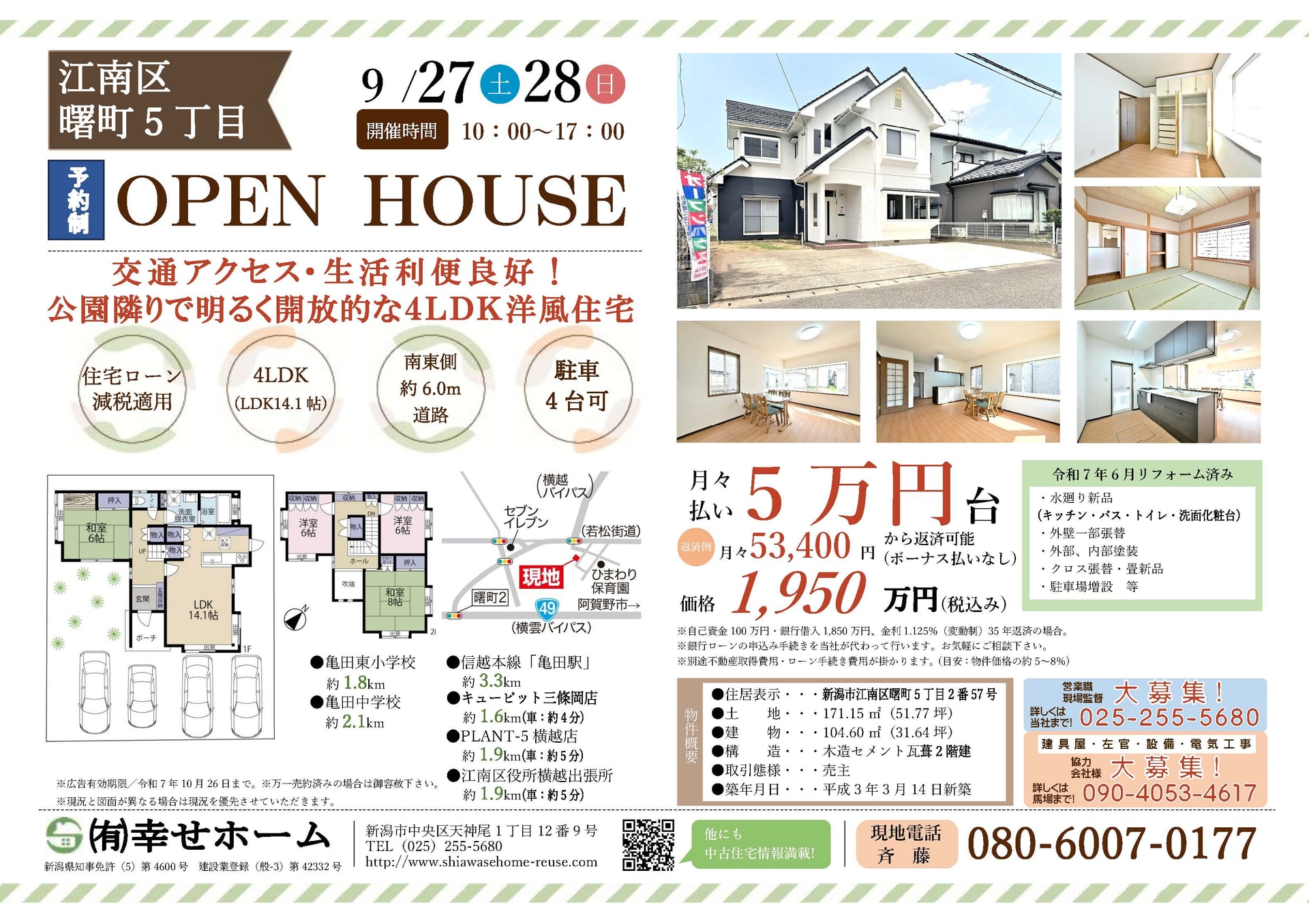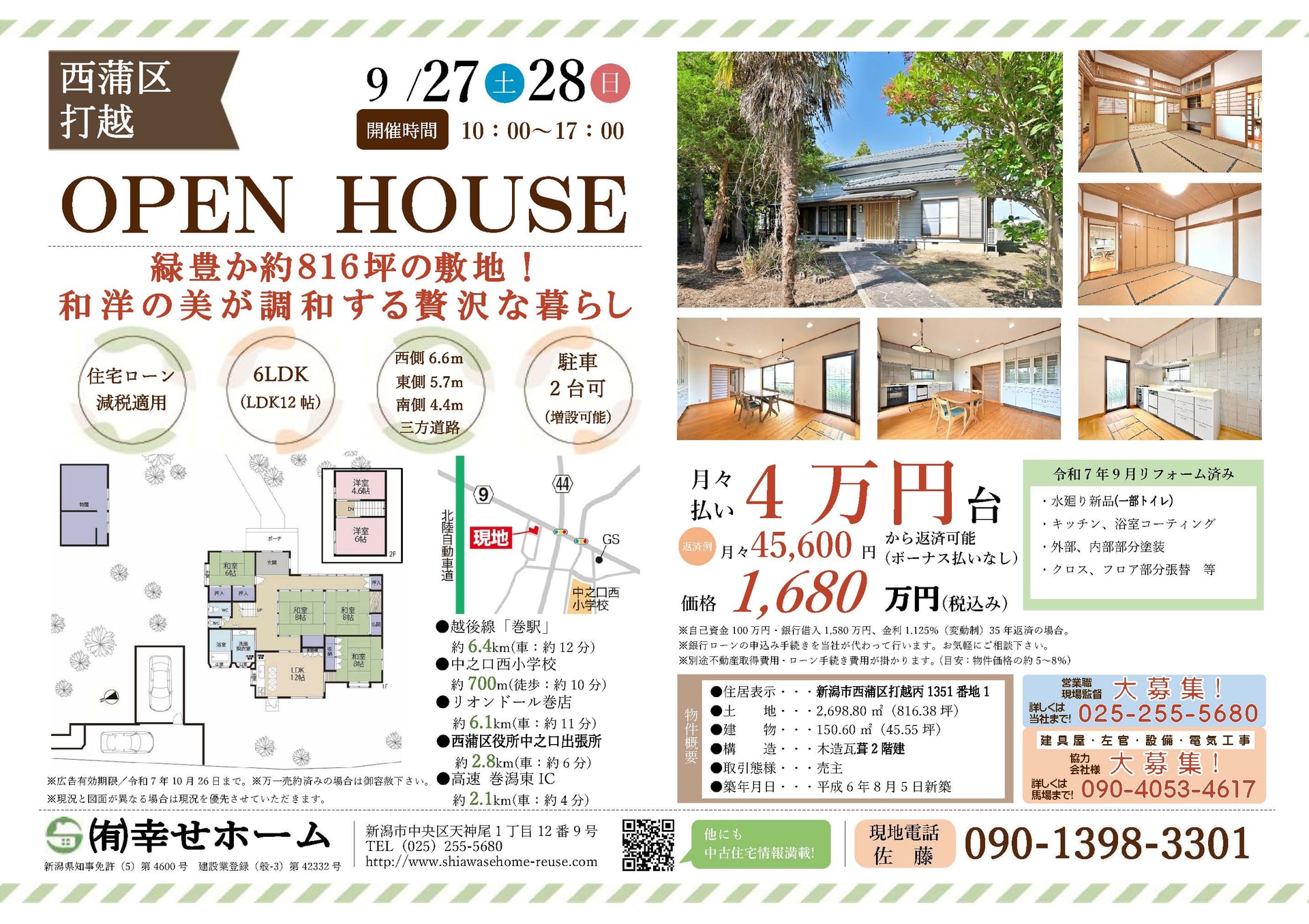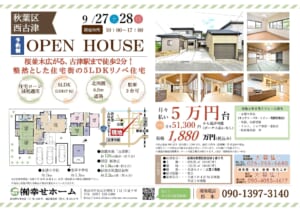 次週のオープンハウス情報です!<9/27(土)~9/28(日)>