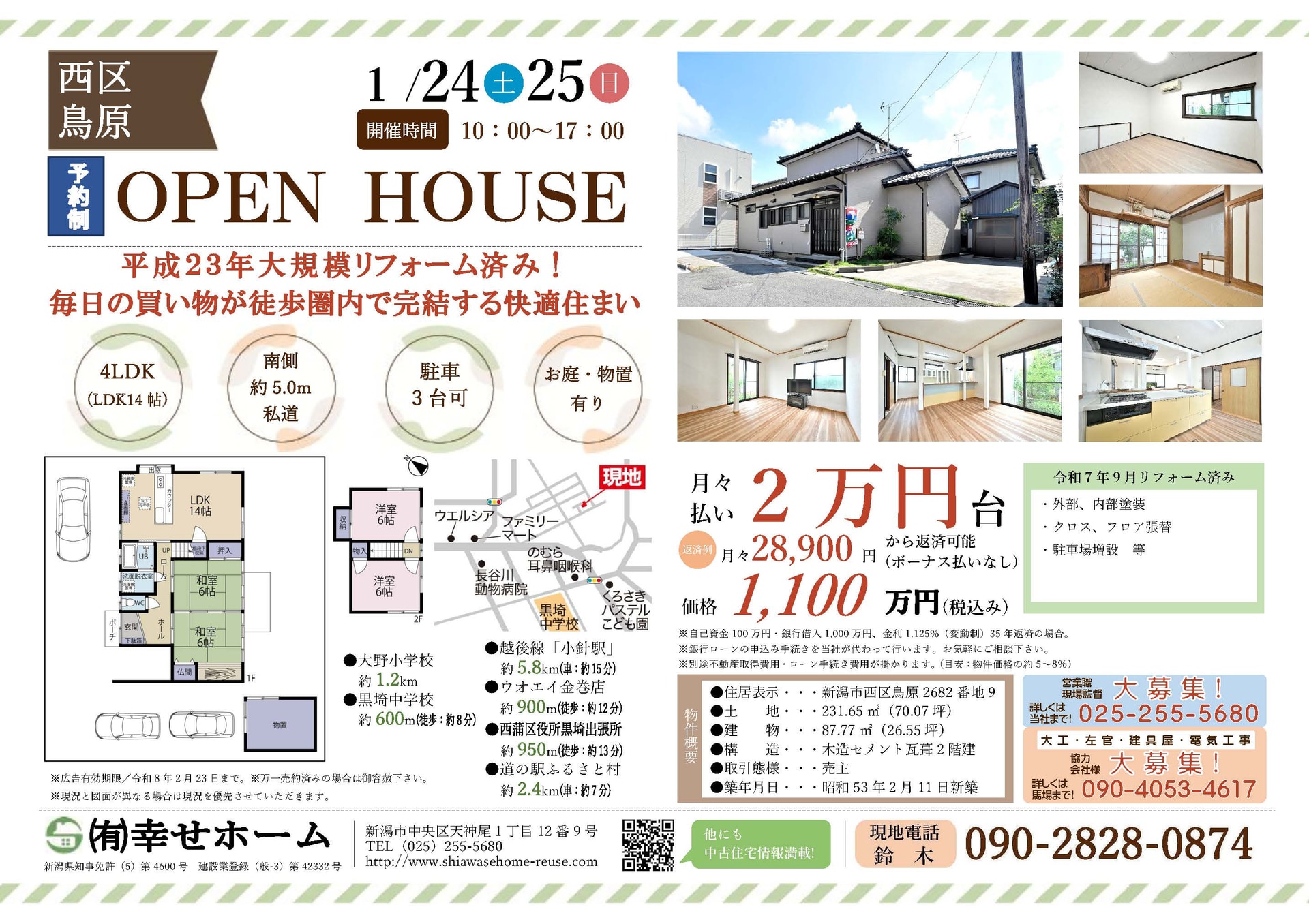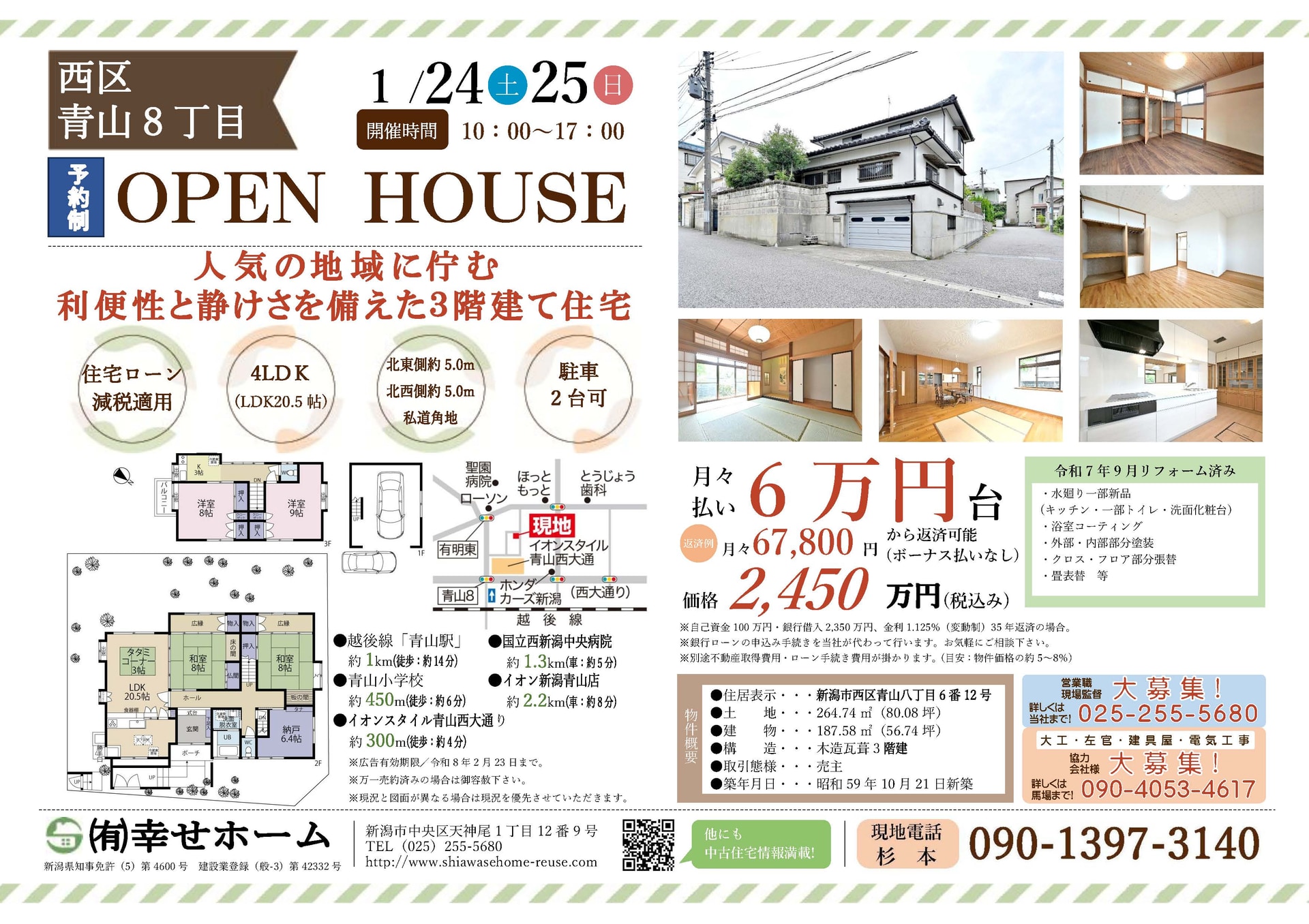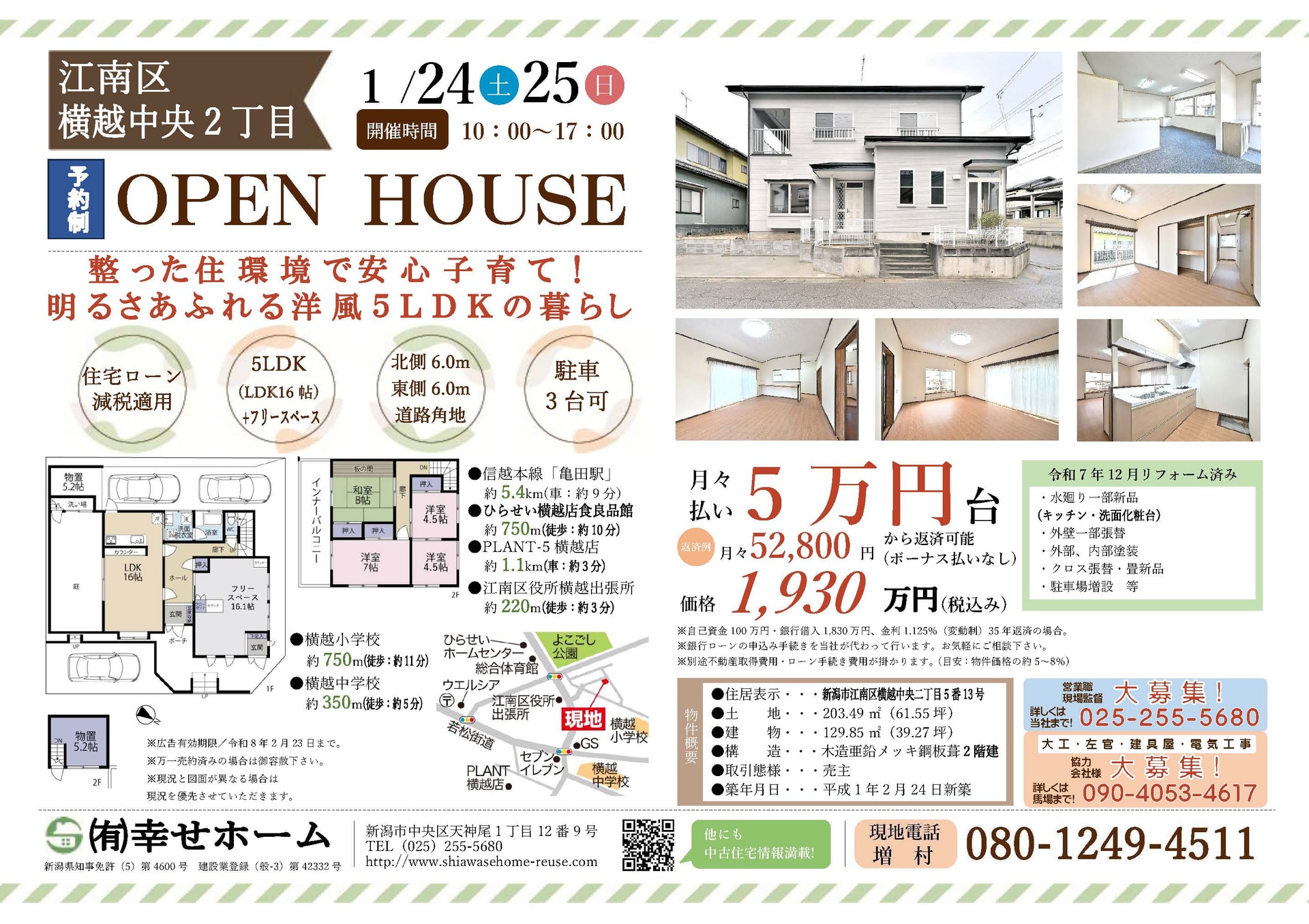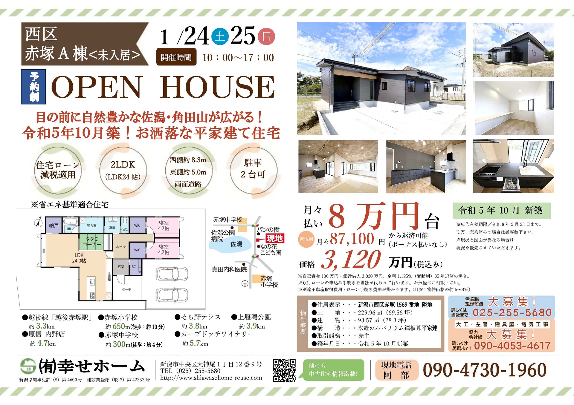 不動産会社「幸せホーム」では、新潟県内の中古物件のオープンハウスを定期的に開催しております。現在、新潟県内でお住まいをお探しのお客様は、ぜひお気軽にご来場ください。