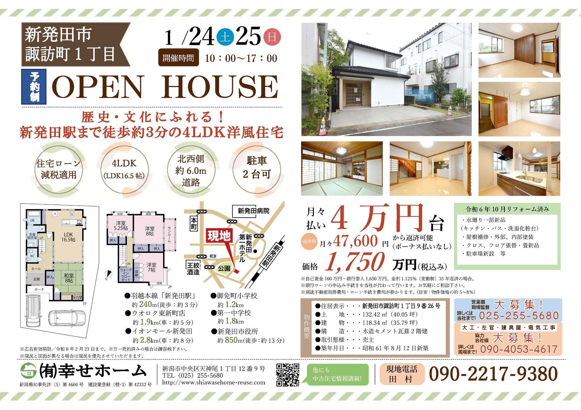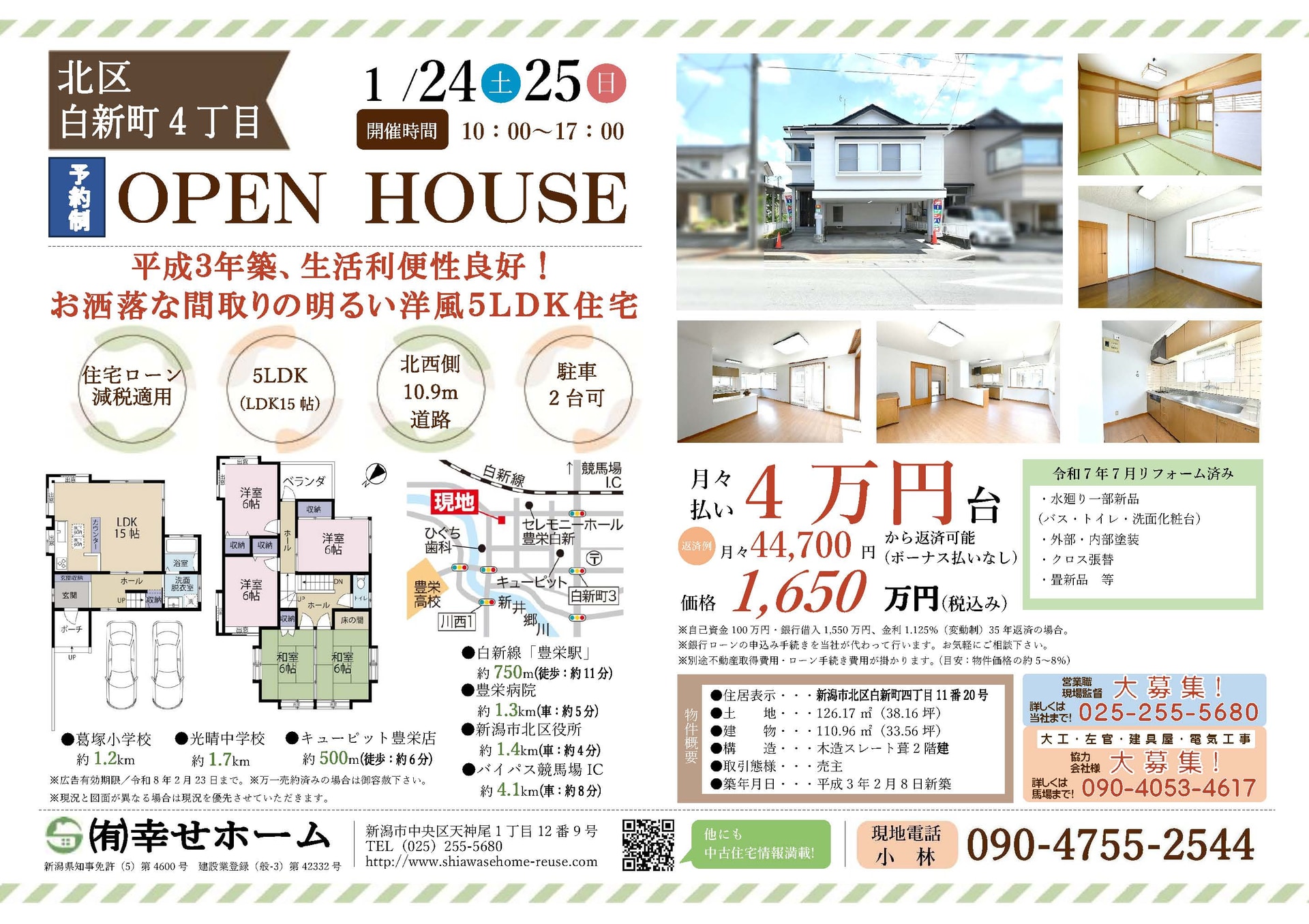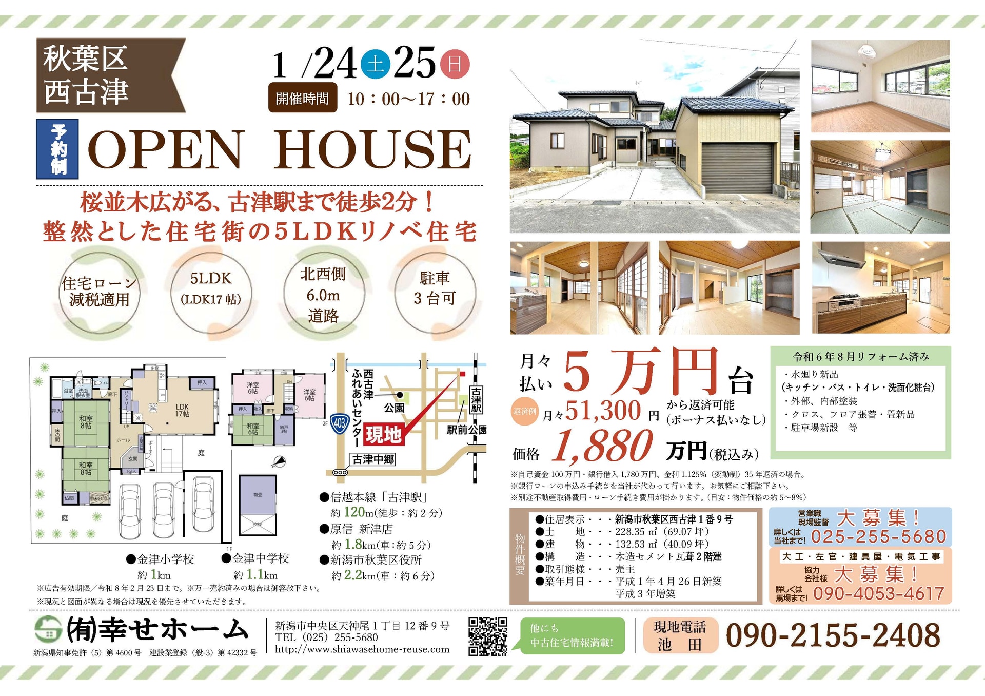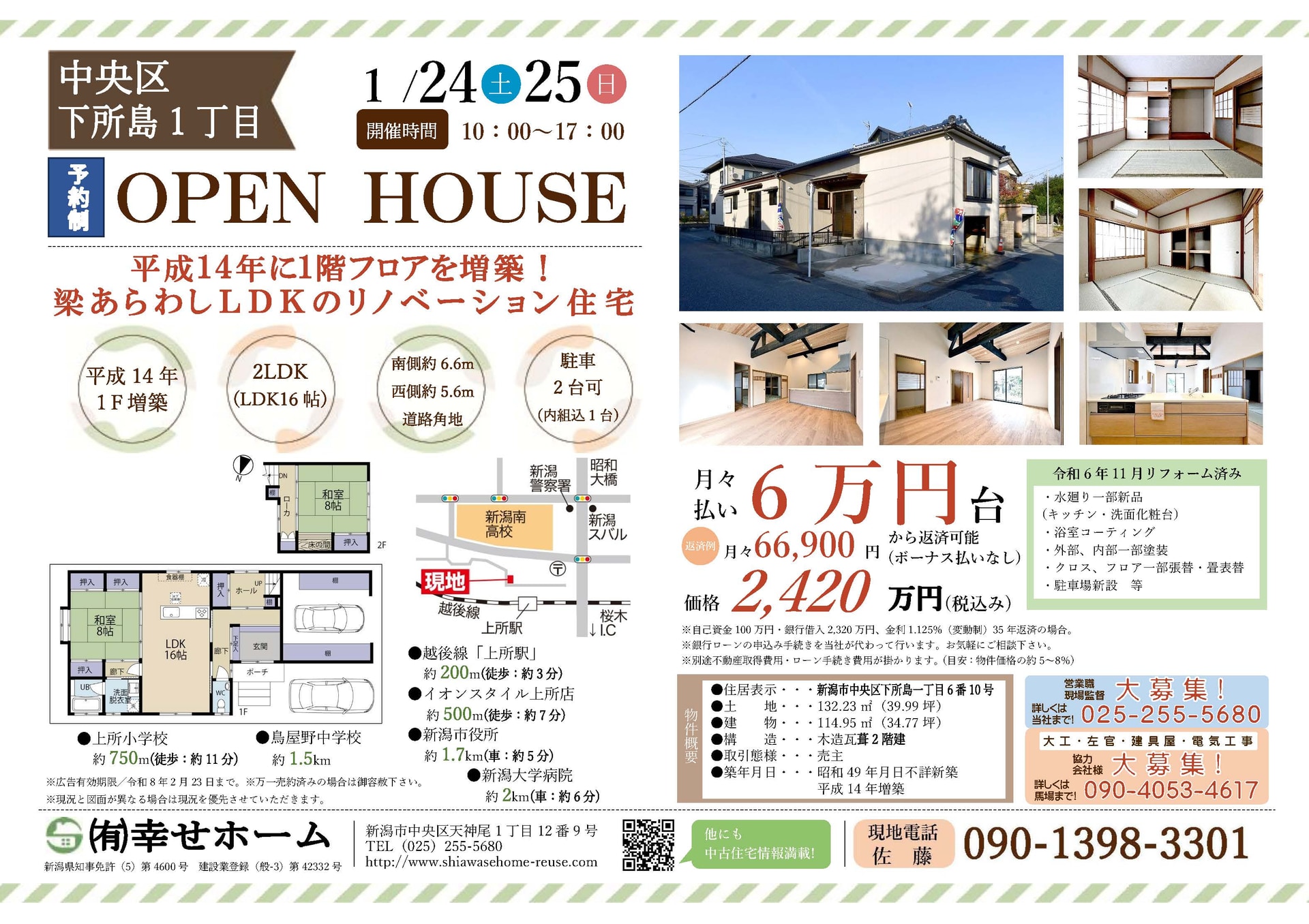 不動産会社「幸せホーム」では、新潟県内の中古物件のオープンハウスを定期的に開催しております。現在、新潟県内でお住まいをお探しのお客様は、ぜひお気軽にご来場ください。