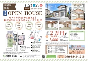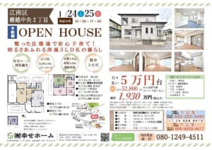 次週末のオープンハウスは、<1/24(土)~1/25(日)>2日間の開催予定です。
