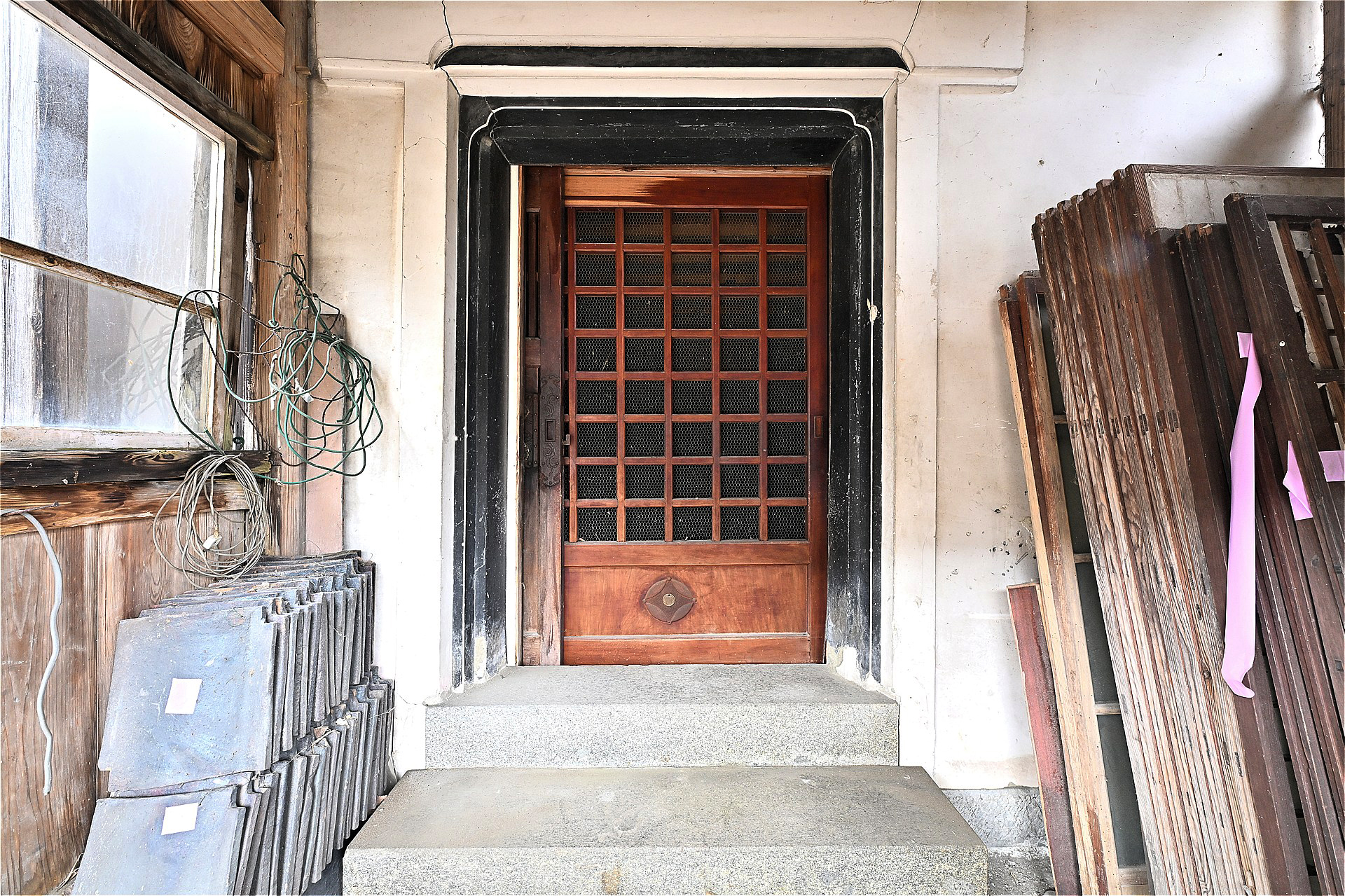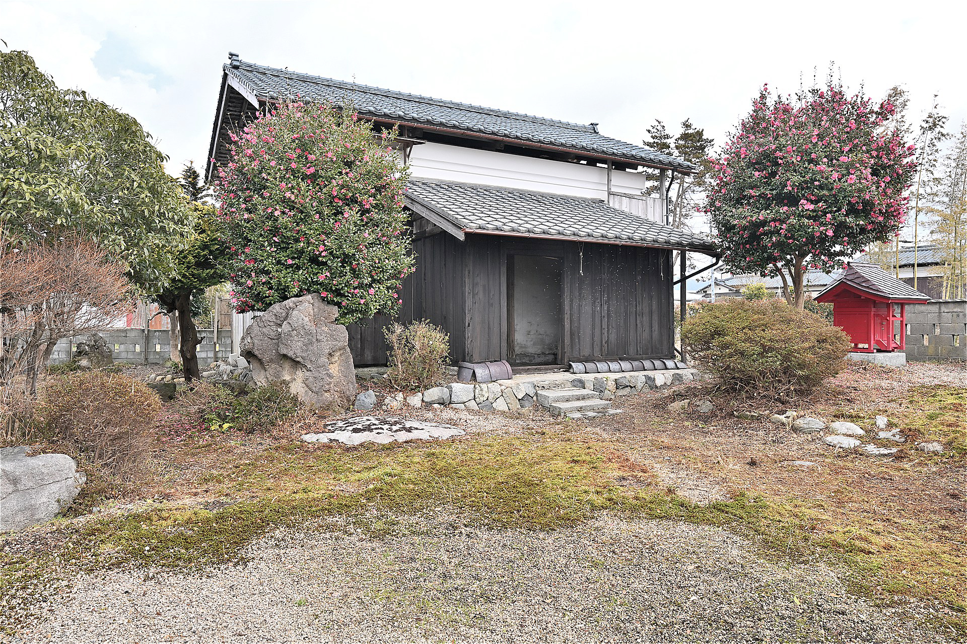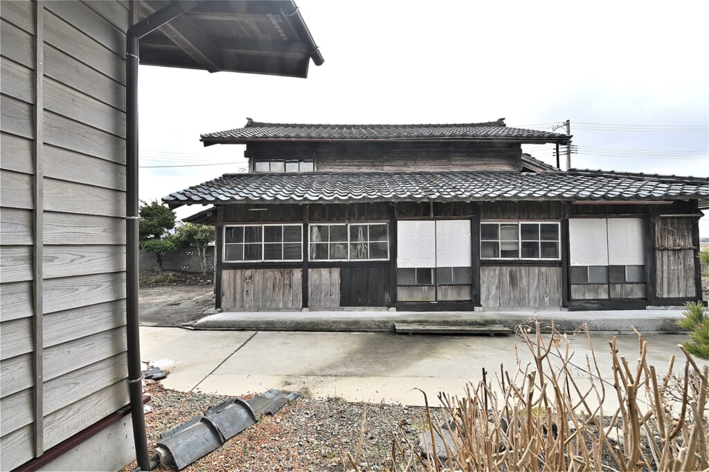 | 構造 | ①木造瓦葺2階建て ②木造ステンレス鋼板葺平家1階建 | 新築年月日 | ①築年不詳 平成27年10月21日増築 ②平成27年10月21日新築 | ||||||||||||