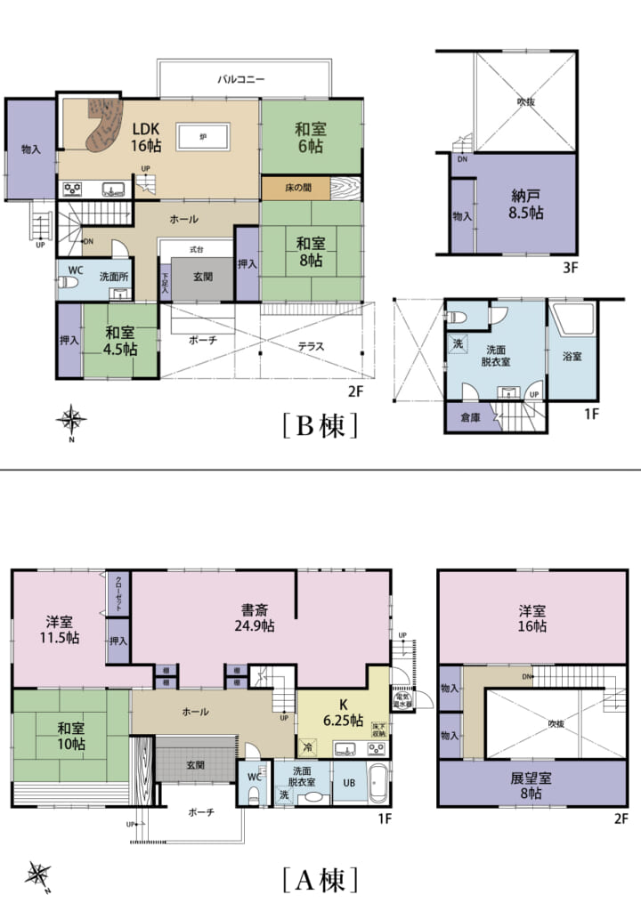 A棟:2K+書庫+納戸×2