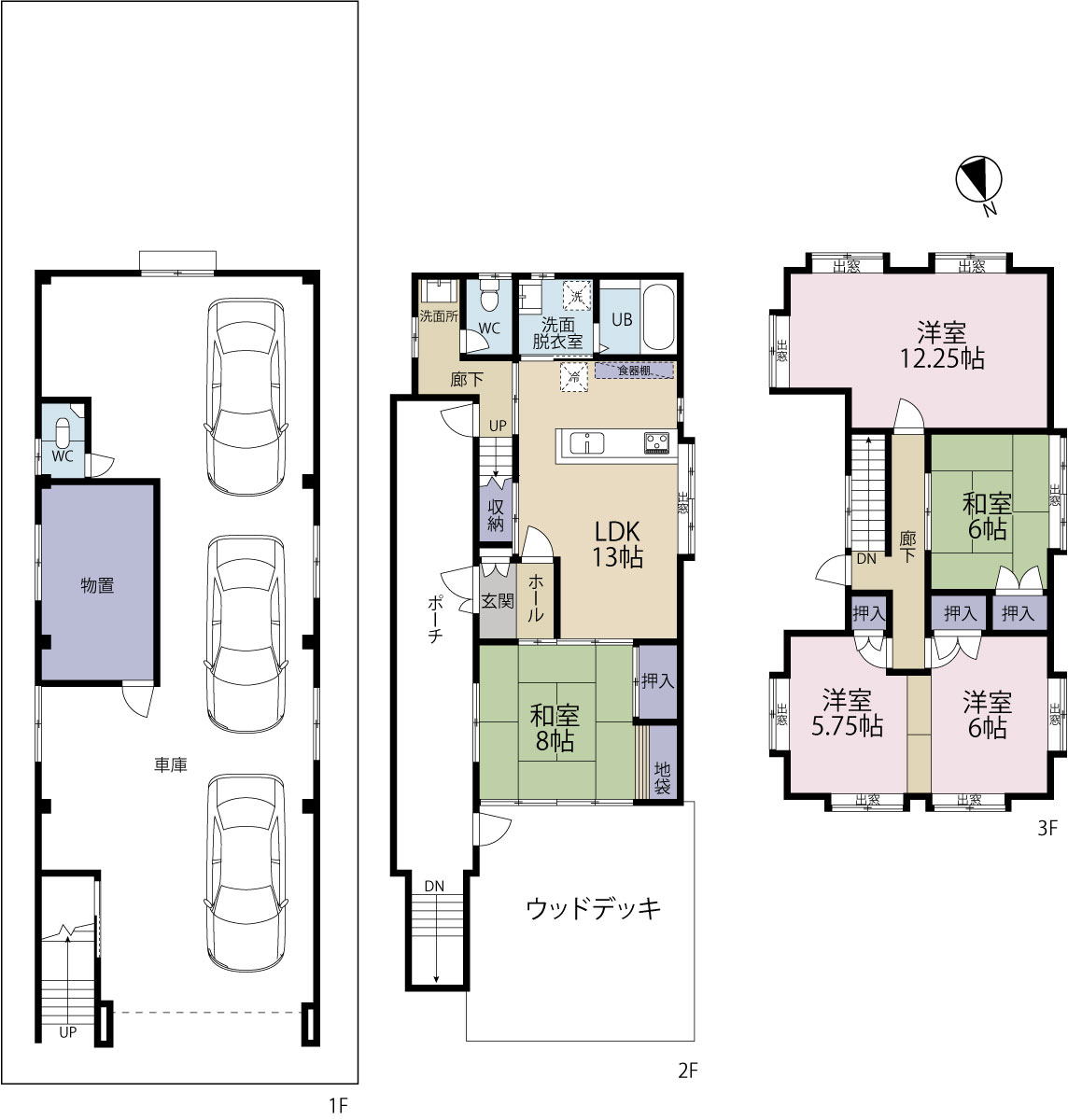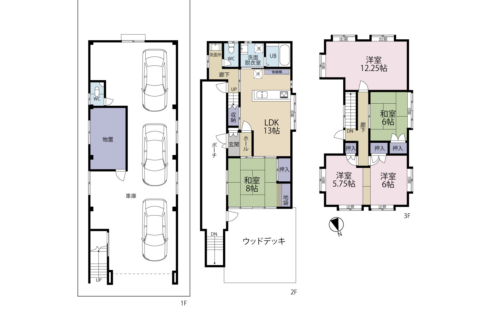 ★3階建て5LDKのゆとり!インナーガレージと開放的ウッドデッキの住宅